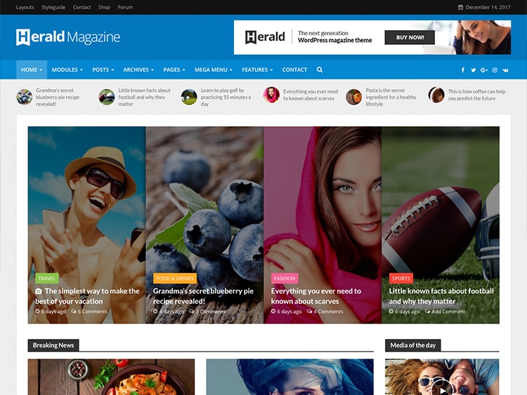 While this theme features demos for fashion, sports, technology, and other publications, Herald works just as well as a news portal as it does a magazine theme. The scope for customization is huge, including over 500 different post layouts to choose from, as well as a number of custom post types, and support for high-definition logos and icons. Also, if you work with multiple authors, Herald makes it super simple to display their profiles, as well as the categories they are associated with.