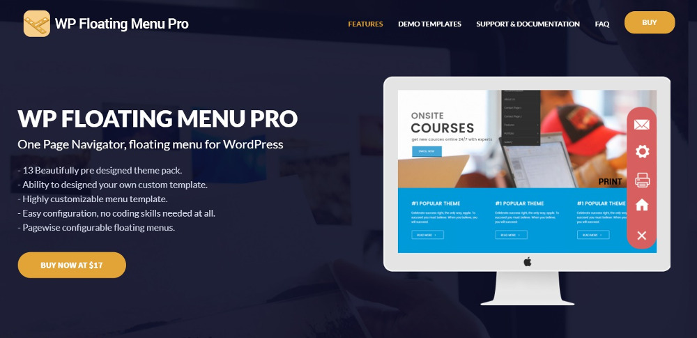WP Floating Menu Pro is the only plugin in this list that’s designed specially for single-page menus. The plugin helps build two types of menus: single-page menu and sticky menu. Typically, one-page websites are divided into many sections, each of which has content that loosely corresponds to a page. When visitors click on a menu item, they will automatically reach that section instead of another page.